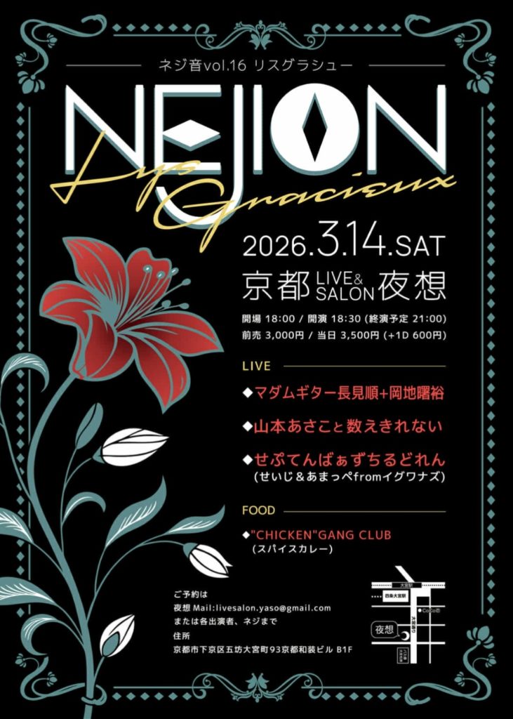 ご予約は、夜想mail:livesalon.yaso@gmail.comにて受付致します。