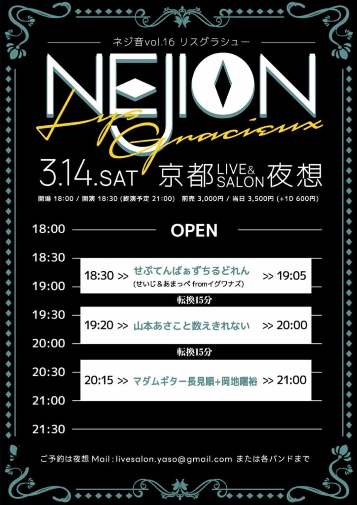 お問い合わせ先:livesalon.yaso@gmail.com